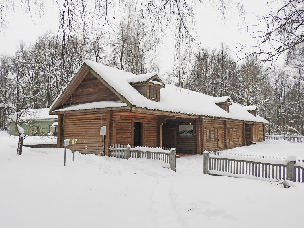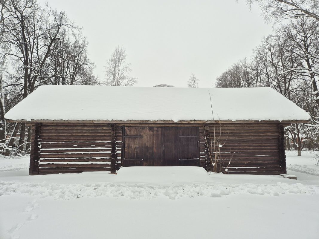 К югу от главного дома расположен каретный сарай — бревенчатое одноэтажное здание второй половины XIX века, имеющее Г-образную форму в плане. Под общей крышей объединены хозяйственные срубы с амбарами и каретным сараем. В протяжённой части здания устроены два проезда.