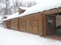 Здание прямоугольное в плане, выполнено в виде сруба «в лапу» на кирпичном основании, с двухскатной световой кровлей.