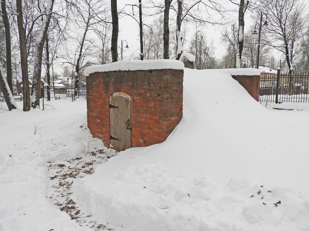 Мемориальный погреб расположен к северо-востоку от главного дома. Это небольшое сооружение с кирпичными торцевыми стенами и коробовым сводом, покрытым слоем дёрна. До реставрации 2004–2005 годов объект находился в аварийном состоянии.