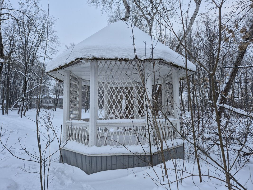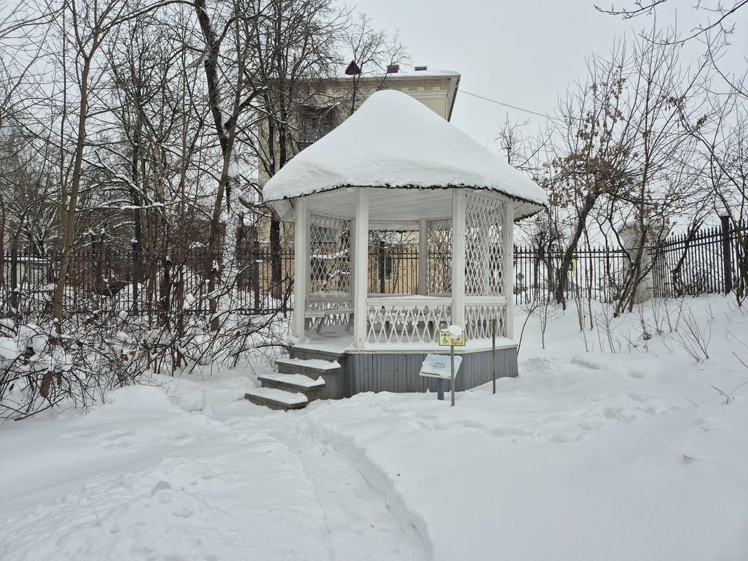 Мемориальная беседка расположена в северо-восточной части территории музея-заповедника, в мемориальной зоне, вблизи ограды.