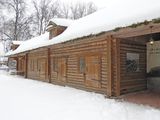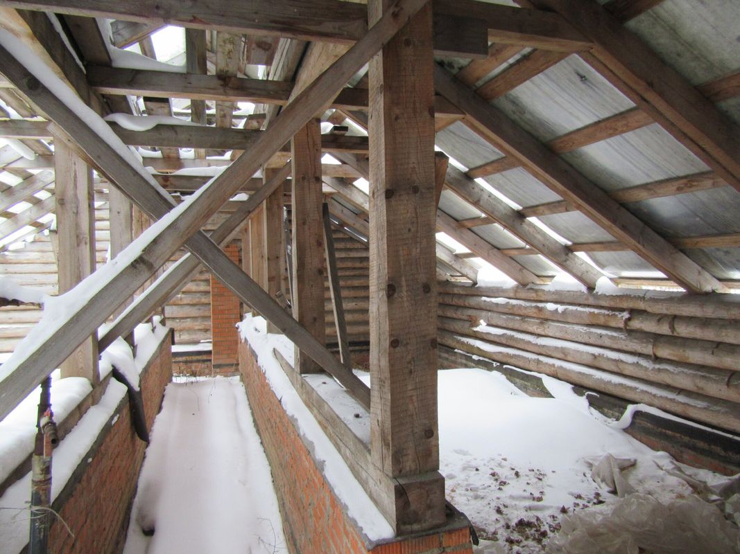 — деревянный сруб «в обло» на кирпичном цоколе;